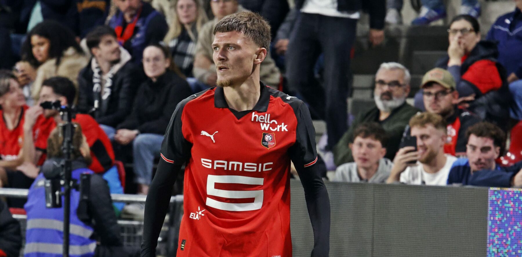 Lancé par Alidu Seidu suite à une récupération de Valentin Rongier depuis le milieu de terrain avec le pied sur la ligne médiane, Breel Embolo part au but et marque le troisième but rennais… l’espace de quelques instants, celui-ci étant refusé pour un hors jeu au centimètre près (68′) !